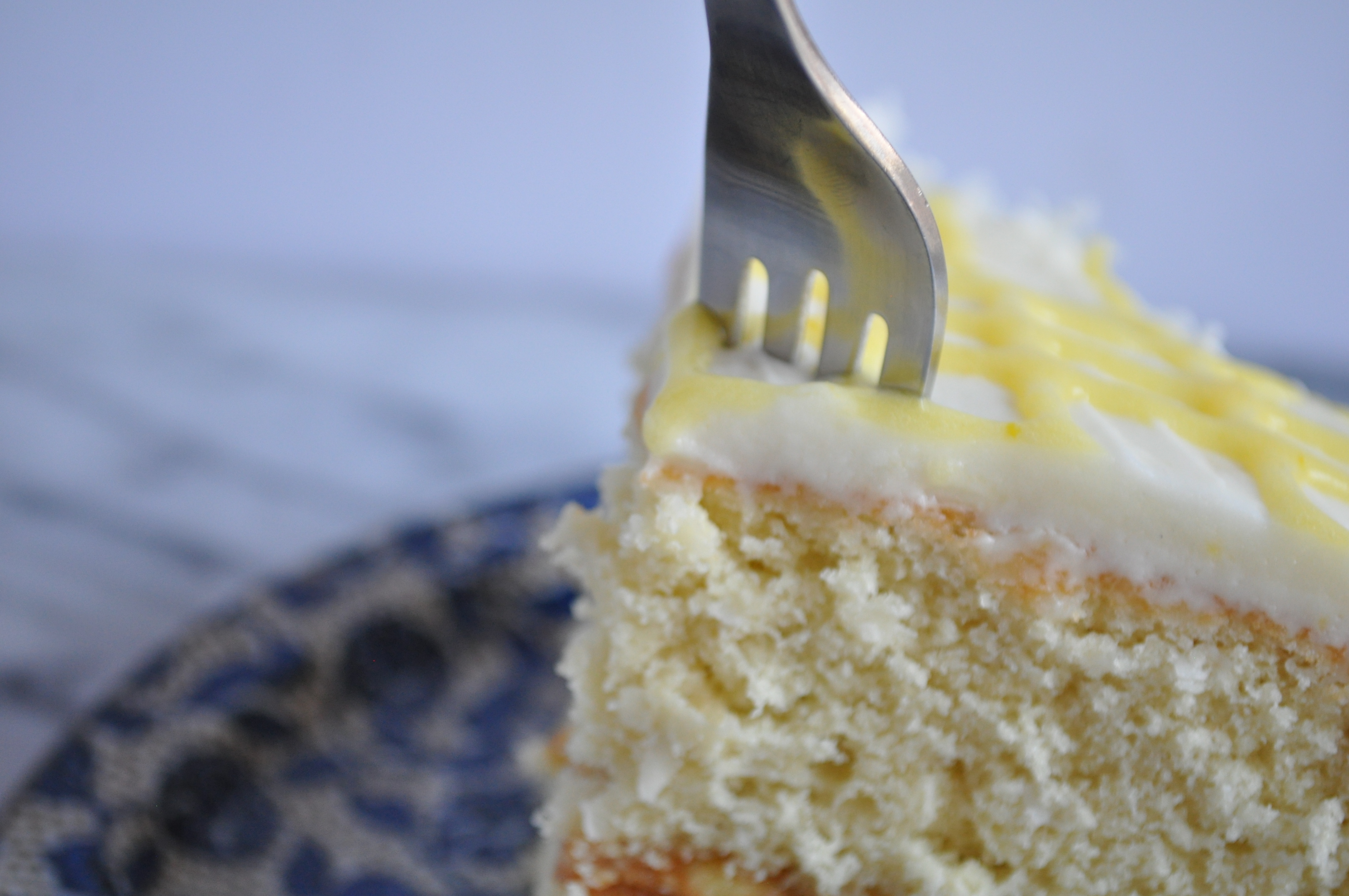 Optional: If you want to give the cake bigger lemon kick, add a layer of our beautiful lemon curd with the frosting in the middle and a design of your choice with some on top, we attempted a checker board pattern. As you can see, it’s not perfect, but it definitely tasted good.